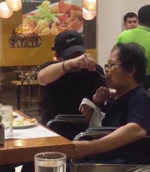 وحظي الشاب الفلبيني بروني روزالبس، الذي يبلغ من العمر 28 عاماً، حظى إعجاب الكثير من الناس بسبب ما قام به مع والدته البالغة من العمر 70 عاماً، من خلال مقطع فيديو متداول رصده زبون كان يجلس على طاولة في الجهة المقابلة.